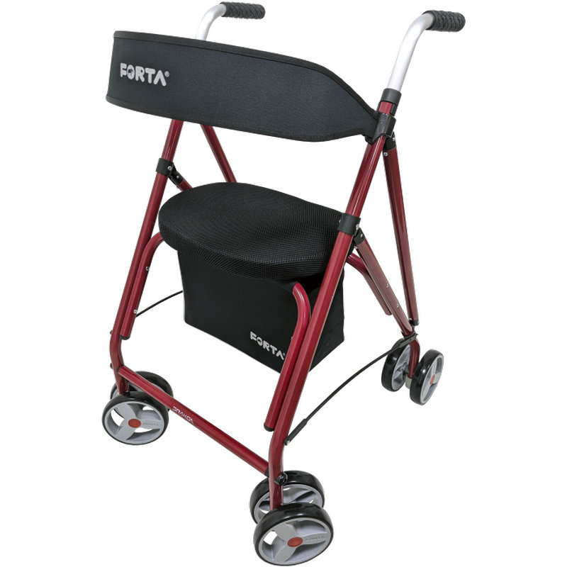 · Ruedas traseras dobles con freno de maneta y sistema de bloqueo. Presiona hacia abajo las manetas y el andador quedará frenado de manera segura.